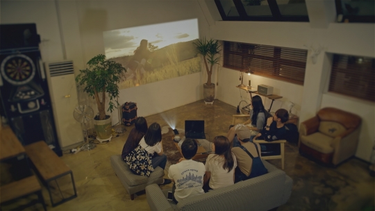 소니의 모바일 프로젝터 'MP-CL1'를 사용하면 어떤 장소라도 가족·지인과 즐기는 영화관으로 변신한다. /소니코리아
