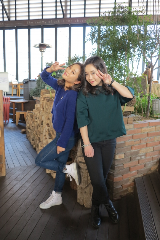 영화 '트윈스터즈'의 주인공 사만다 푸터먼(왼쪽)과 아나이스 보르디에가 26일 오후 서울 아트나인에서 진행된 인터뷰에서 포즈를 취하고 있다./엣나인필름