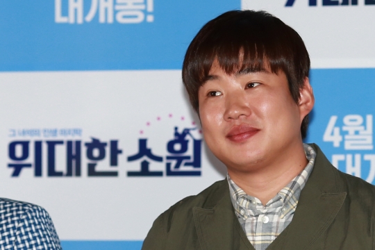 [메트로신문 손진영기자] 7일 오후 서울 광진구 롯데시네마 건대입구에서 열린 영화 '위대한 소원' 언론시사회에 참석해 취재진 질문에 답하고 있다.
