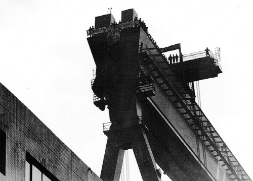 1990년 현대중공업 노동조합 파업 당시 골리앗 크레인 점거농성 모습. /현대중공업 노조