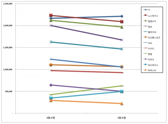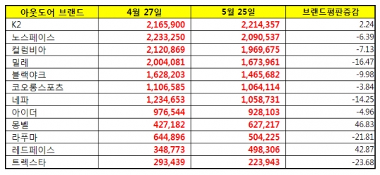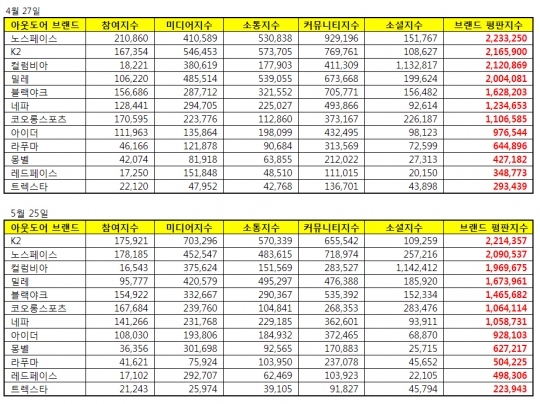 아웃도어 브랜드 평판지수/한국기업평판연구소