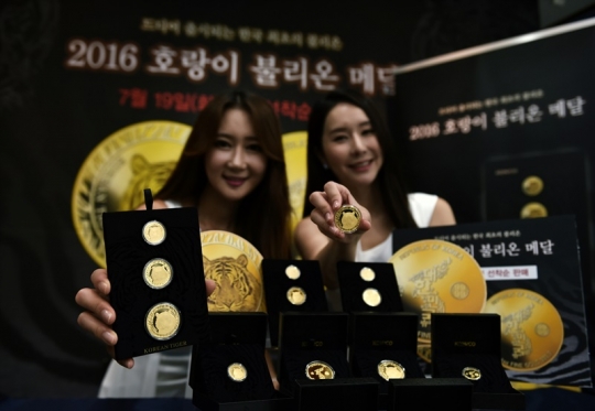 한국조폐공사는 19일 한국의 호랑이 불리온 메달 론칭 행사를 실시하고 본격적인 판매에 들어갔다. 호랑이 불리온 메달은 3종·프루프급·한정수량으로, 조폐공사가 금 순도(Au 999.9)와 중량을 보증한다. 판매가격은 금 시세와 연동하여 매일 결정된다. 중국의 판다, 미국의 독수리, 호주의 캥거루, 캐나다의 단풍잎 등과 같은 각국을 상징하는 동·식물을 주제로 해외 조폐국에서 불리온 사업을 활발히 수행해오고 있다는 점에 착안, 한국조폐공사도 대한민국을 상징하는 동물인 호랑이를 주제로 투자와 수집가치가 결합된 호랑이 불리온 메달을 출시했다./한국조폐공사