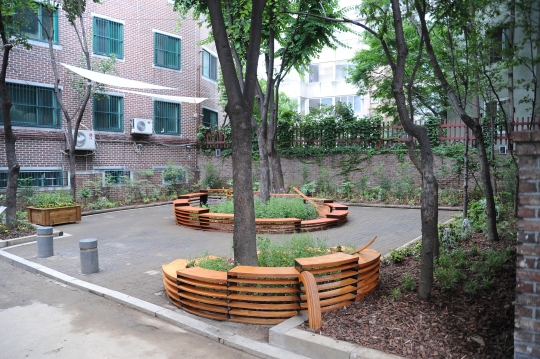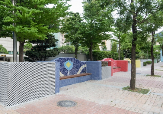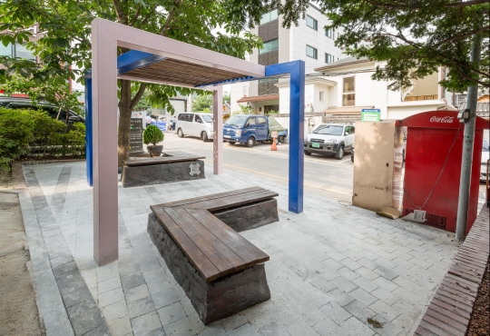 #군데군데 부서지고, 낡아서 앉기 힘들었던 시립 북부병원의 담장 쉼터가 병원을 출입하는 환자와 가족들에게 희망의 불꽃을 심어주는 5가지 컬러벤치로 바뀌었다. 300년 된 노쇠한 느티나무가 덩그러니 놓여 있던 방배동의 보호수 공간은 하늘을 바라보며 쉴 수 있는 쉼터와 스트레칭을 위한 힐링의 공간으로 재탄생했다.