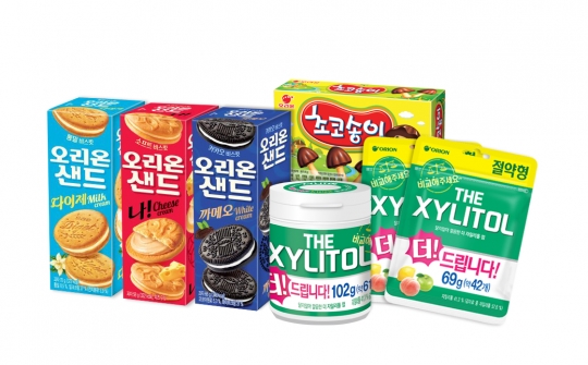 오리온은 이달 19일부터 제품 패키지 크기와 용량을 줄여 가격을 인하하는 4차 포장재 개선을 진행했다. '다이제샌드', '나', '까메오' 중량을 줄이고 가격을 1200원에서 1000원으로 낮춰 그램(g) 당 가격을 3% 인하했다. '더 자일리톨'은 '더 자일리톨 용기껌'으로 리뉴얼해 76g에서 102g으로 가격변동 없이 34% 증량했다. 오리온 측은 제품들의 포장 크기를 줄이고 가격을 낮춰 가성비를 높이는 것에 무게를 뒀다고 설명했다.