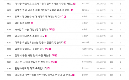 메갈리아 논란은 언론계도 피해가지 못했다. 종합편성채널 JTBC는 27일 '뉴스룸'에서 웹툰 '미지의 세계' 이자혜 작가가 메갈리아 논쟁과 관련해 네티즌 52명을 고소했다는 내용을 보도했다.