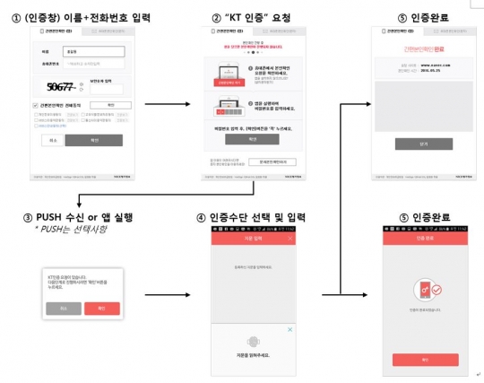 'KT 인증' 간편 본인확인 이용 시나리오. / KT