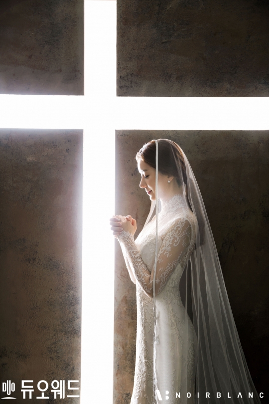 듀오웨드에 따르면 이 아나운서는 웨딩 촬영에서 지적이면서도 세련된 외모에 청초한 이미지를 더해 가을 신부로 완벽 변신했다. 십자가 사이로 새어나온 자연의 빛에 두 손을 모아 기도하는 모습은 결혼을 앞둔 신부의 떨리는 마음을 고스란히 담아냈다.