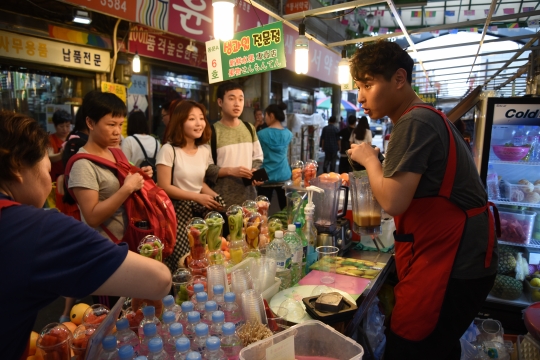 착하게 생긴 엄마와 엄마를 닮은 아들이 운영하는 생과일주스 가게도 눈에 띈다. 하루 종일 몇잔이나 파는지 세는 것도 힘들단다. 여름철에는 그 인기가 가히 끝내준다. 물도 거의 타지 않은 생과일주스가 한 잔에 단돈 3000원이라니. 더운 여름 수분과 당을 보충하기 위해 줄을 서서 기다릴 법도 하다. 손님들에게 과일주스를 만들다보니 주인장 아들의 이마에는 땀이 송글송글 맺힌다. 엄마는 그런 아들의 모습을 안쓰럽게 쳐다본다.