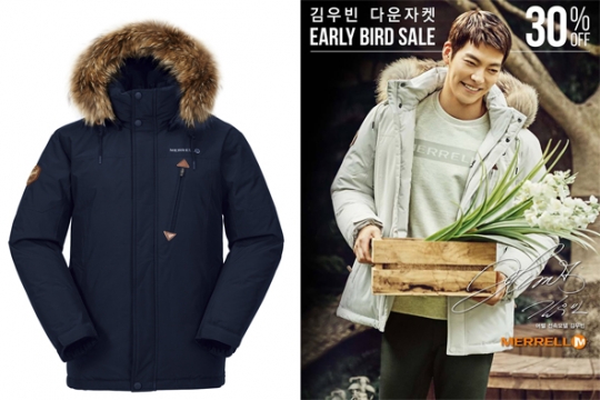 KBS2 수목드라마 '함부로 애틋하게'의 남자주인공 김우빈이 입고 등장해 화제가 된 머렐의 다운재킷 역시 선판매 중이다. 다음달 8일까지 원가의 30% 할인된 가격에 구매할 수 있다. 행사기간 동안 구매고객에게는 김우빈 브로마이드를 증정한다. 대표적인 선판매 다운 제품은 '함부로 애틋하게' 10회에서 김우빈과 배수지가 커플룩으로 입고 나온 제품이다. 심플한 네이비 컬러에 리얼 라쿤 트리밍이 부착돼 고급스러운 느낌을 준다.