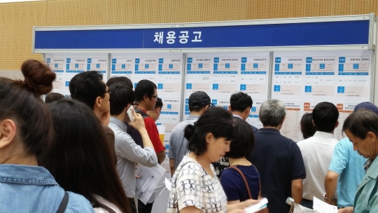 취업박람회에 참석한 시민들이 '채용공고'를 보고 있다. /서울시