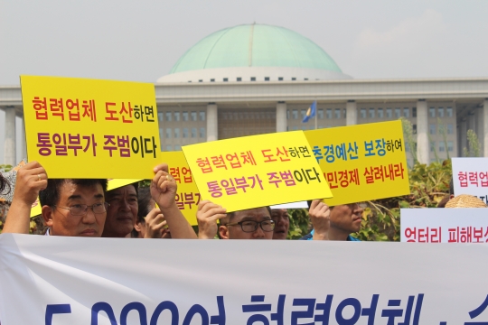18일 개성공단 입주기업과 이들 기업에 각종 원부자재를 납품하는 협력업체들이 다시 길거리로 나섰다. 지푸라기를 잡는 심정으로 정부와 국회, 언론, 국민에게 호소하기 위해서다.