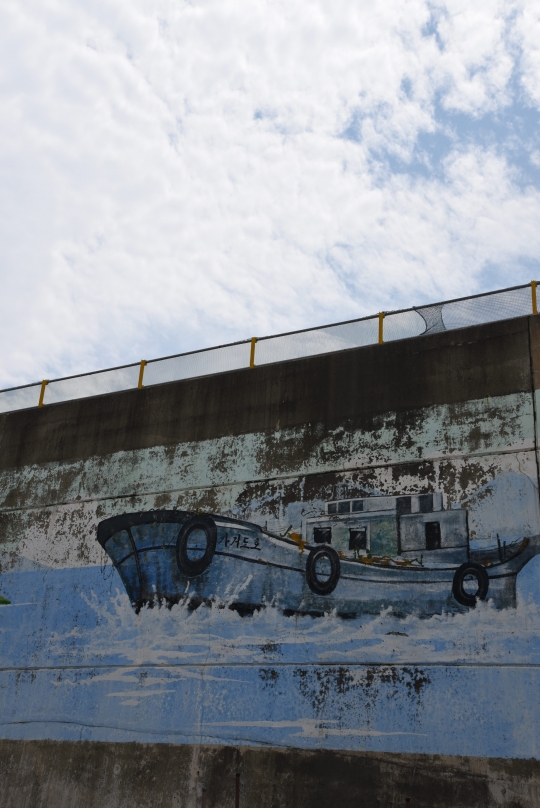 가거도행 쾌속선에서 내리면 방파제에 그려진 그림이 가장 먼저 여행객을 맞는다./김승호