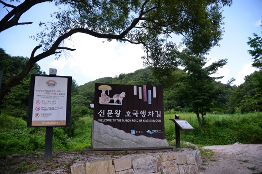경북 경주 신문왕 호국행차길 안내판이 서 있는 곳에서 본격적인 오솔길이 시작된다./한국관광공사