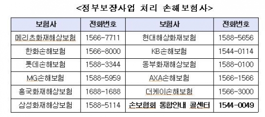 보험개발원은 "보상금을 청구하기 위해선 우선 사고사실을 경찰에 반드시 신고해야 하며 신고 후에는 보장사업 업무를 위탁수행하고 있는 손보사 11곳의 본사, 지점 또는 보상센터에 정부보장사업을 신청하면 서류심사 후 보상금을 지급 받을 수 있다"고 전했다.