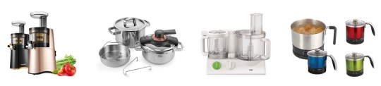 PN풍년의 압력솥 '베르투원', 브라운 '멀티 푸드 프로세서', 신일산업 '라면포트'.(왼쪽 두번째부터)