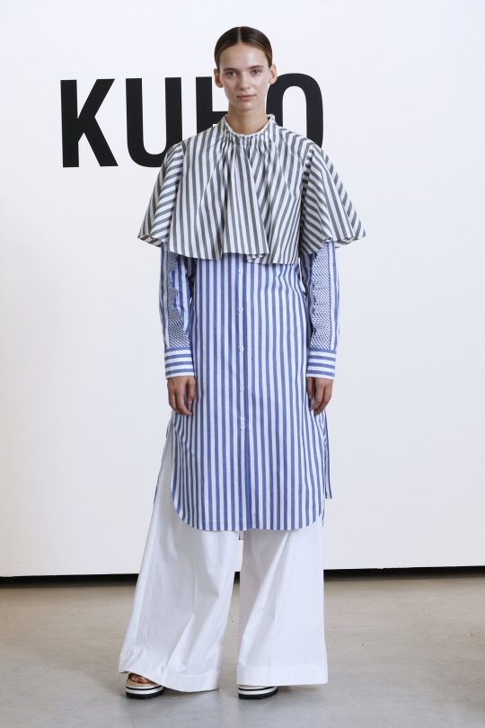 브랜드 고유의 미니멀리즘과 구조적인 실루엣을 강조하면서 젊은 감성을 담았으며, 저지 원단과 사방 스트레치 소재를 활용해 편안함을 극대화하고, 스트라이프 안감과 컨트라스트 배색 단추를 활용 디테일한 디자인성을 높였다.