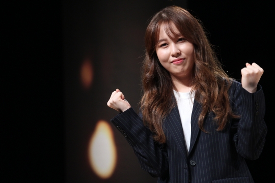 가수 권진아가 19일 오전 서울 강남구 일지아트홀에서 열린 정규 1집 '웃긴 밤' 쇼케이스에 참석해 포토타임을 갖고 있다.