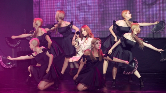 가수 송지은이 20일 오전 서울 마포구 예스24무브홀에서 두번째 미니앨범 '바비돌 Bobby Doll' 쇼케이스를 갖고 멋진 무대를 선보이고 있다.