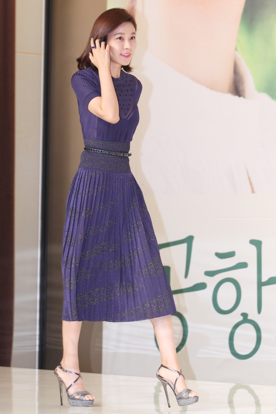배우 김하늘이 20일 오후 서울 영등포구 타임스퀘어에서 열린 드라마 '공항가는 길' 제작발표회에 참석해 포토타임 갖고 있다.