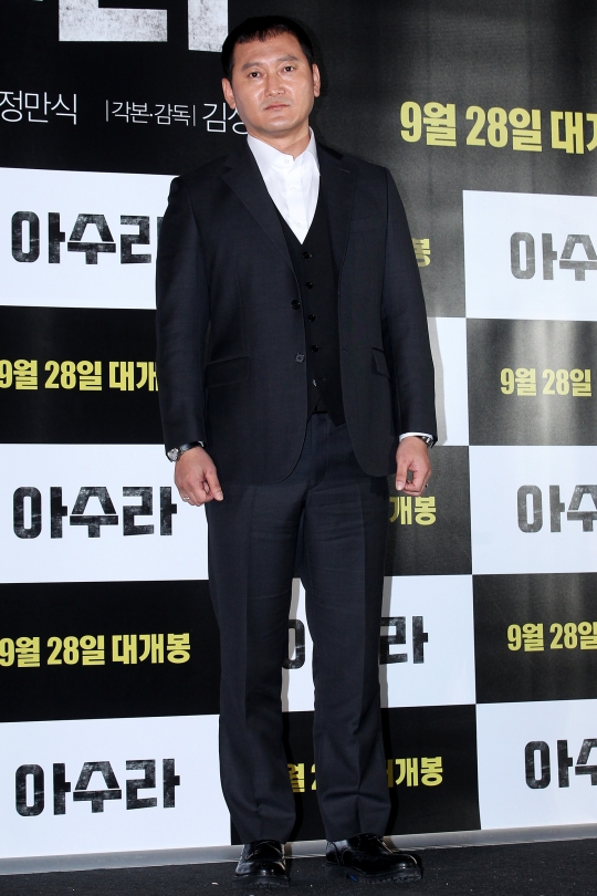 배우 정만식이 21일 오후 서울 성동구 CGV왕십리에서 열린 영화 '아수라' 언론시사회에 참석해 포토타임 갖고 있다.