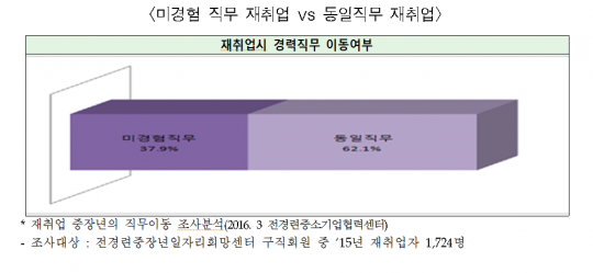 전경련일자리센터 관계자는 "재취업 할 때 자신이 다년간 경험해 온 경력을 살려서 일자리를 구하는 것이 훨씬 더 유리하다는 것이 통계적으로도 반증되고 있다"면서 "특히 사무직의 경우 75.2%가 경력을 살려 사무직으로 재취업하는 것으로 조사됐다"고 밝혔다.