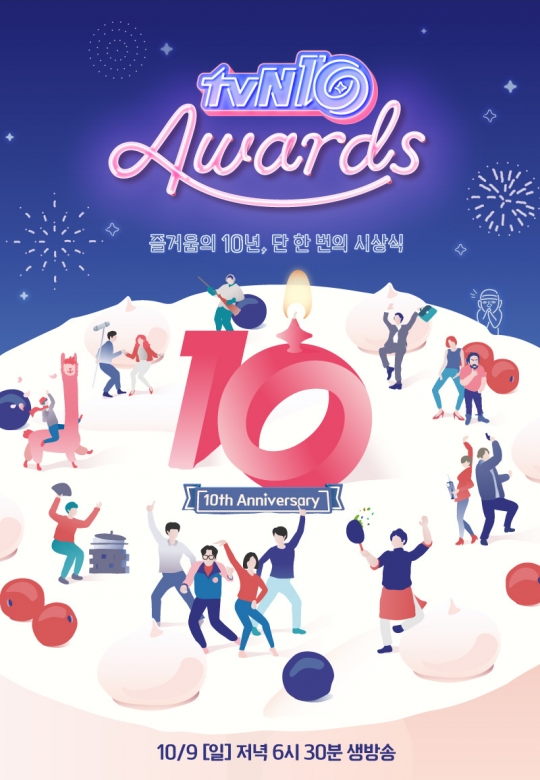 시상식은 9일 저녁 6시 30분 레드카펫을 시작으로 7시 40분부터 본식을 진행한다. 개국부터 10년동안 역사를 함께 한 드라마와 예능 프로그램을 총망라한 특별한 시상식이다. tvN과 OtvN, tvN Asia, Mnet japan, 텐센트, KCON TV등을 통해 전세계에서 동시 생중계된다.