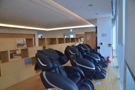 라이나생명 본사 건물 13층 헬스케어센터 마사지실에는 안마기를 비치해 임직원들이 언제든 이용할 수 있도록 했다./라이나생명