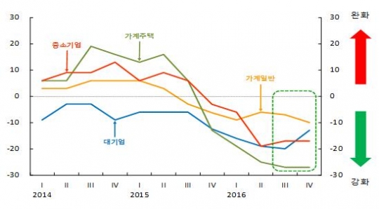 한편 비은행기관인 상호저축은행, 사호금융조합, 생명보험회사의 대출은 더욱 힘들어질 것으로 보인다. 기업실적 부진과 중·저신용등급 차주의 상환능력 악화 우려, 정부의 가계부채 관리 대책 등에 따라 대출태도를 강화할 것으로 전망됐다.