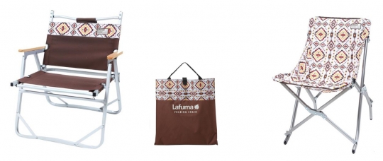 라푸마의 '폴딩 체어'는 알루미늄 재질의 가볍고 휴대가 간편한 접이식 의자로 등받이 부분에 손잡이가 있어 이동 시에 편리한 장점이 있다. 또한 고급 우드 팔걸이로 마감되어 안정감 있게 사용할 수 있다. 함께 선보인'슬림 체어'는 군더더기 없는 미니멀한 디자인과 에스닉 그래픽으로 많은 사랑을 받고 있다.