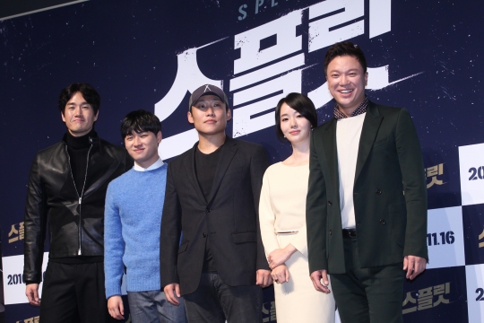 18일 오전 서울 강남구 CGV압구정에서 열린 영화 '스플릿' 제작보고회에 참석한 출연진들이 포토타임 갖고 있다.