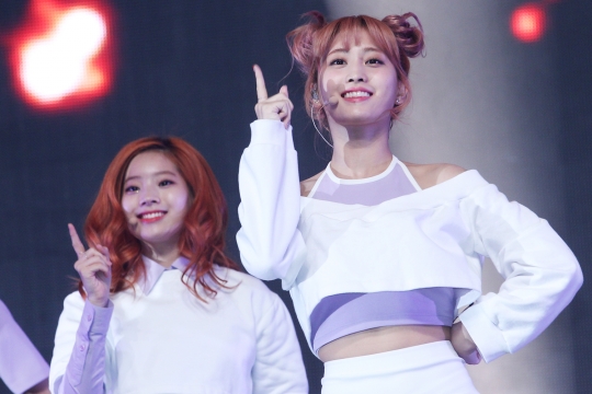 걸그룹 트와이스(나연, 정연, 모모, 사나, 지효, 미나, 다현, 채영, 쯔위)의 모모가 25일 오후 서울 용산구 블루스퀘어홀에서 열린 세번째 미니앨범 'TWICEcoaster : LANE 1' 쇼케이스에 참석해 멋진 무대를 선보이고 있다.
