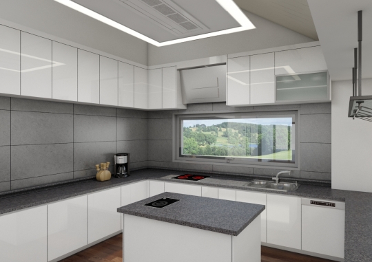 주방에는 보통 슬라이딩 창을 사용한다. 이때문에 창문의 크기가 작고 개방되는 면적이 좁아 답답하고 환기가 잘 되지 않아 불편했다. 새롭게 선보인 '주방전용창'은 기존 주방에 주로 사용되는 이중창과 달리 단창으로 구성돼 통 유리를 통해 들어오는 자연 채광과 탁 트인 조망성을 확보한 것이 가장 큰 특징. 주방 가구 및 가전 선택 시에도 디자인과 재질·색상 등 세부적 요소까지 고려하는 주부들을 겨냥해 최근 가전 제품에 많이 사용되는 메탈릭 소재와 잘 어울리는 소재를 사용하고, 유럽산 핸들을 적용하는 등 심미적인 측면에도 초점을 맞췄다.