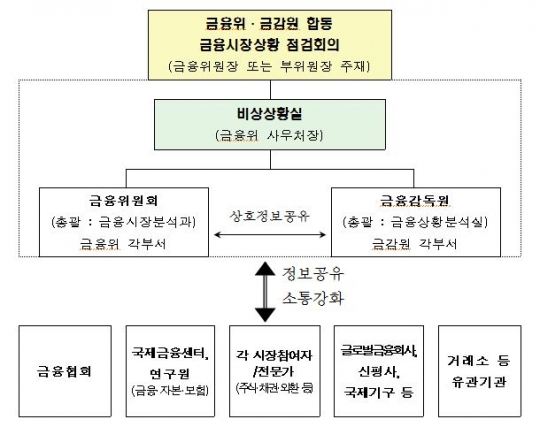 이에 따라 금융위와 금감원은 7일부터 금융위 사무처장을 반장으로 비상상황실을 가동하는 등 비상대응체제로 전환한다. 또 기획재정부, 한국은행 등 관계기관과 정보공유 등 협력을 강화하고 모든 국내외 금융시장 상황을 빠짐없이 24시간 모니터링하며 필요 시에는 이미 마련된 컨틴전시 플랜에 따라 시장안정화 조치를 즉시 시행할 계획이다.