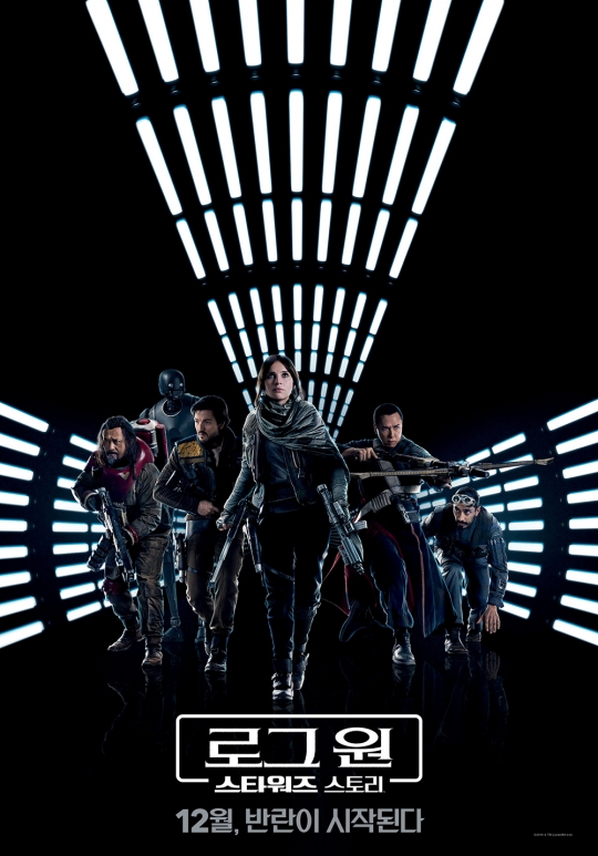 12월 개봉 예정인 '로그 원: 스타워즈 스토리'는 '스타워즈' 시리즈의 첫 스핀오프 버전이다. 희망이 사라진 시기, 평범했던 사람들이 한 팀이 되어 세상을 구원할 반란을 통해 영웅으로 거듭나는 이야기를 그린 액션 블록버스터다. 새로운 주인공부터 불가능한 미션에 도전하는 팀 '로그 원'의 반란 등 완전히 다른 스토리와 압도적인 비주얼로 앞서 시리즈 전편을 보지 않은 관객들도 부담 없이 즐길 수 있는 새로운 스타워즈의 탄생을 알린다.