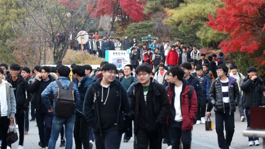 2017학년도 대학수학능력시험이 치러진 17일 오후 수험생들이 서울 종로구 경복고등학교에서 시험을 마치고 수험장을 나서고 있다.
