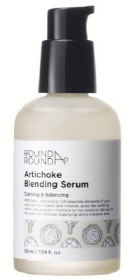 라운드어라운드 아티초크 블렌딩 세럼은 비타민, 미네랄 등이 풍부한 아티초크 잎 추출물을 52% 함유하여 외부 유해환경에 민감해진 피부에 수딩 효과를 전한다