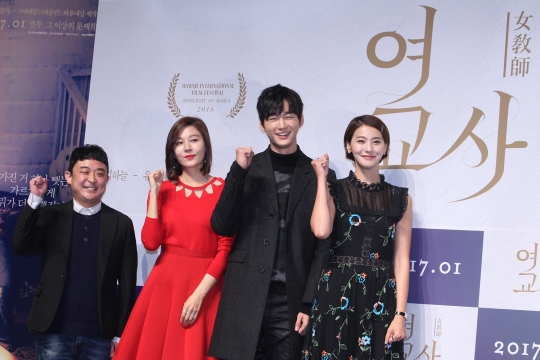 29일 오전 서울 강남구 CGV압구정에서 열린 영화 '여교사' 제작보고회에 참석한 출연진들이 포토타임 갖고 있다.
