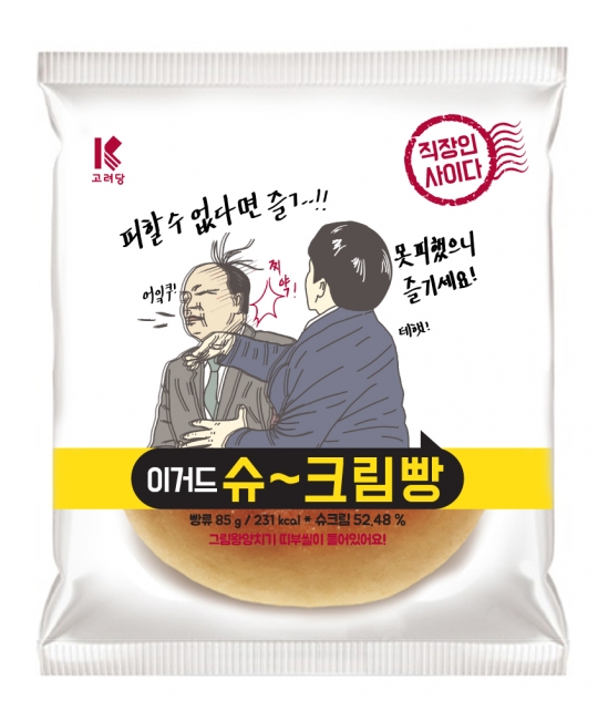 세븐일레븐이 선보인 상품은 '이거드슈~크림빵', '말이필요없단~팥빵', '웃지마소~보루빵' 등 3종이다. 약치기 그림들 중에서도 인기가 많은 그림을 선별해 상품 디자인으로 적용했다.