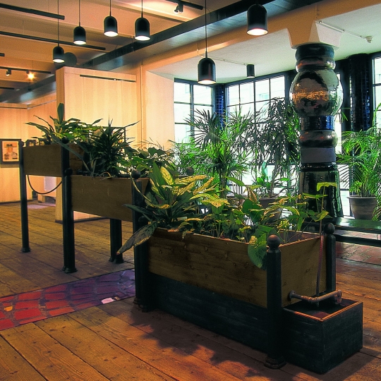 세계적인 거장 레오나르도 다빈치 이후에 가장 과학자적인 재능을 보였던 아티스트 훈데르트바서. 가정의 폐수처리를 위해 수생식물을 활용한 생물체 정수시스템을 디자인하고 제작해 사용했다.