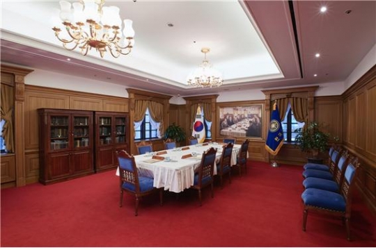 옛 금융통화위원회 회의실 전경. 한국은행 금융통화위원회의 첫 회의(1950년 6월 5일) 모습을 재현했다. 금융통화위원회의 주요 의결내용을 터치스크린을 이용하여 연대별로 살펴볼 수 있으며 최초의 통화안정증권을 발행하기 위한 회의 모습(1961년 11월 16일)을 가상현실(VR)로 체험할 수 있다./한은