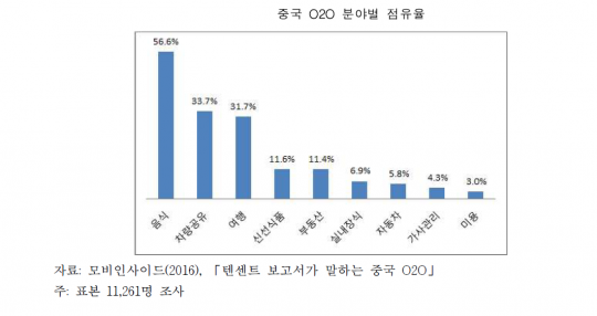산업연에 따르면 중국의 O2O시장은 음식배달, 차량공유, 여행 등 생활밀착형 서비스를 중심으로 발달하고 있다.