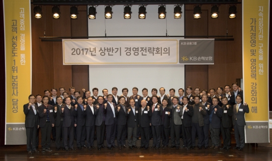 지난 13일 KB손보는 수원 소재 KB인재니움 연수원에서 2017년 경영전략회의를 개최했다. 양종희 KB손보 사장이 회의에서 발언을 하고 있다./KB손보