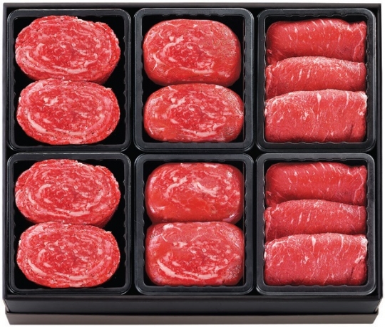 현대백화점 모델이 설 선물세트로 한우를 선보이고 있다. /현대백화점그룹