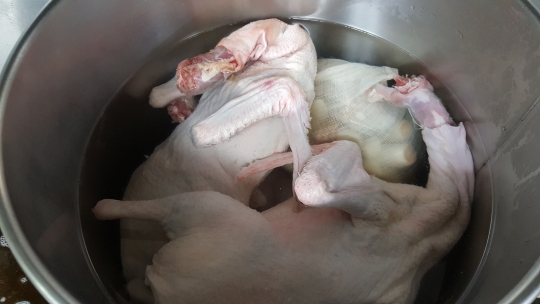 1.오리는 물에 담가 핏물을 제거한 뒤 꽁지 부분의 기름샘을 제거한다.