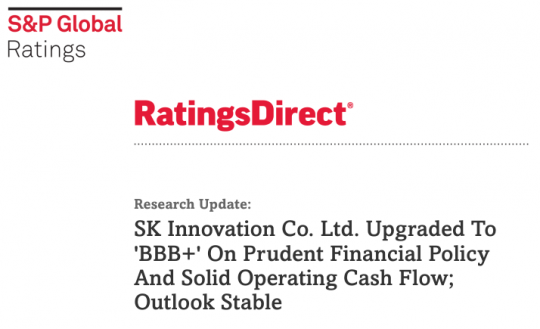 글로벌 신용평가사 스탠다드 앤 푸어스가 SK이노베이션 신용등급을 'BBB+(안정적)'으로 상향 조정했다. /SK이노베이션