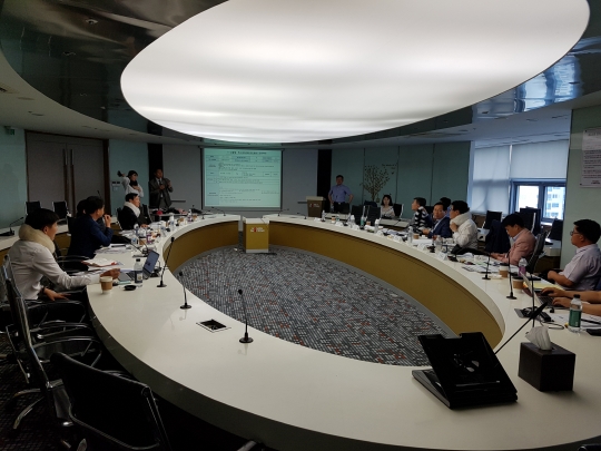 홈앤쇼핑 상품추천위원회가 일사천리 사업을 통해 방송할 제품을 선정하기 위해 회의를 진행하고 있다. /홈앤쇼핑