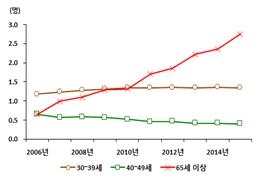 가해운전자 연령별 교통사고 1건당 중상자 수./보험연구원, 도로교통공단 교통사고분석시스템