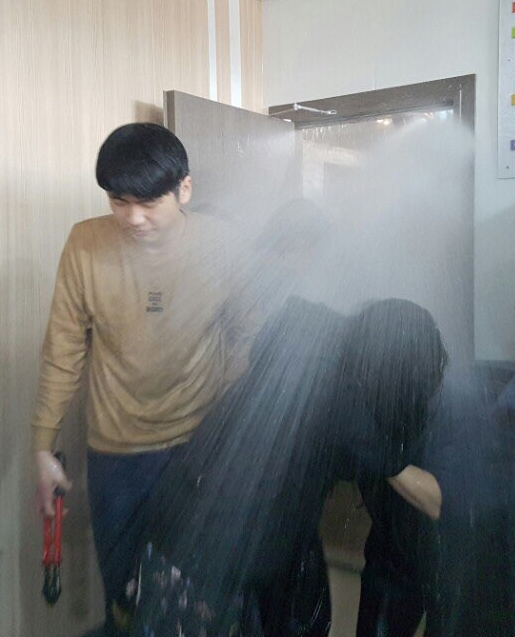 점거 농성을 이어오던 학생들이 학교 측과 물리적 충돌 과정에서 물대포를 맞고 있다./서울대총학생회 제공