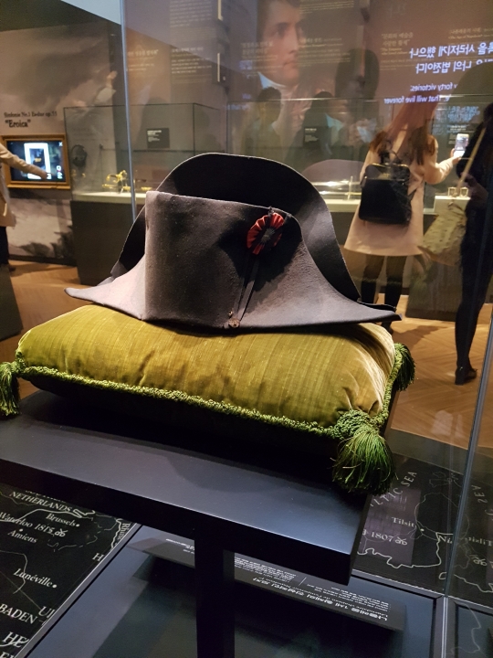 이번에 전시된 이각모는 1800년 5월 알프스를 넘은 나폴레옹이 6월 이탈리아 마렝고 평원에서 오스트리아군과 치른 전투에서 직접 착용한 것이다. 당시 나폴레옹은 그의 수행 수의사에게 선물했고 모나코 왕실이 1926년 수의사의 후손으로부터 사들여 소장해 왔다.
