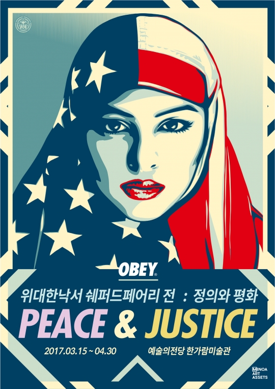 예술의전당과 미노아아트에셋은 다음달 30일까지 예술의전당 한가람미술관에서 그라피티 작가 OBEY GIANT의 단독전인 '위대한 낙서 셰퍼드 페어리 전 : 평화와 정의'를 개최한다